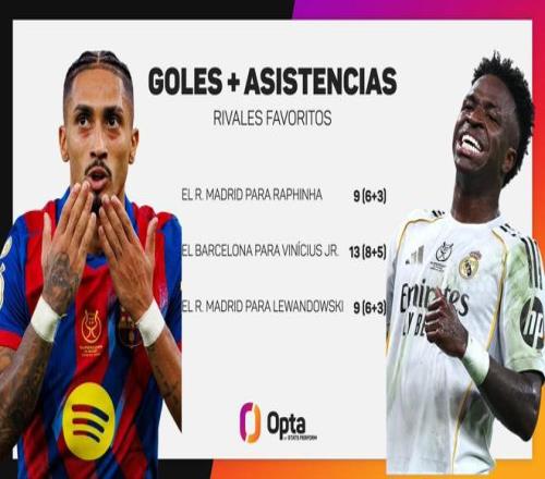 根据Opta的统计,本场比赛维尼修斯(45'+2')、莱万多夫斯基(45'+4')以及贡萨洛-加西亚(45'+6')的3粒进球是本世纪各项赛事的西班牙国家德比首次出现上半场补时阶段打入至少3球的情况。