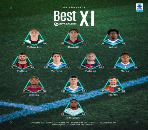 意甲第12轮最佳阵:迈尼昂、普利希奇领衔,内雷斯、利马入选